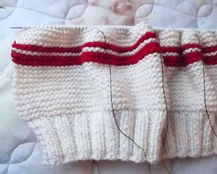 Вяжем 14 рядов резинкой 1*3 (1 лиц., 3 изн.)